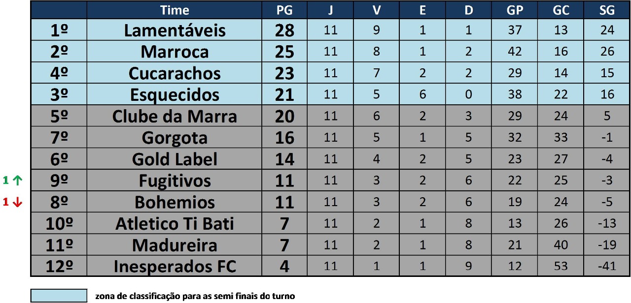 Club Atlético Lamentáveis e Marroca se aproveitaram da vantagem que tinham, empataram seus jogos e farão a final do 1º turno na semana que vem.